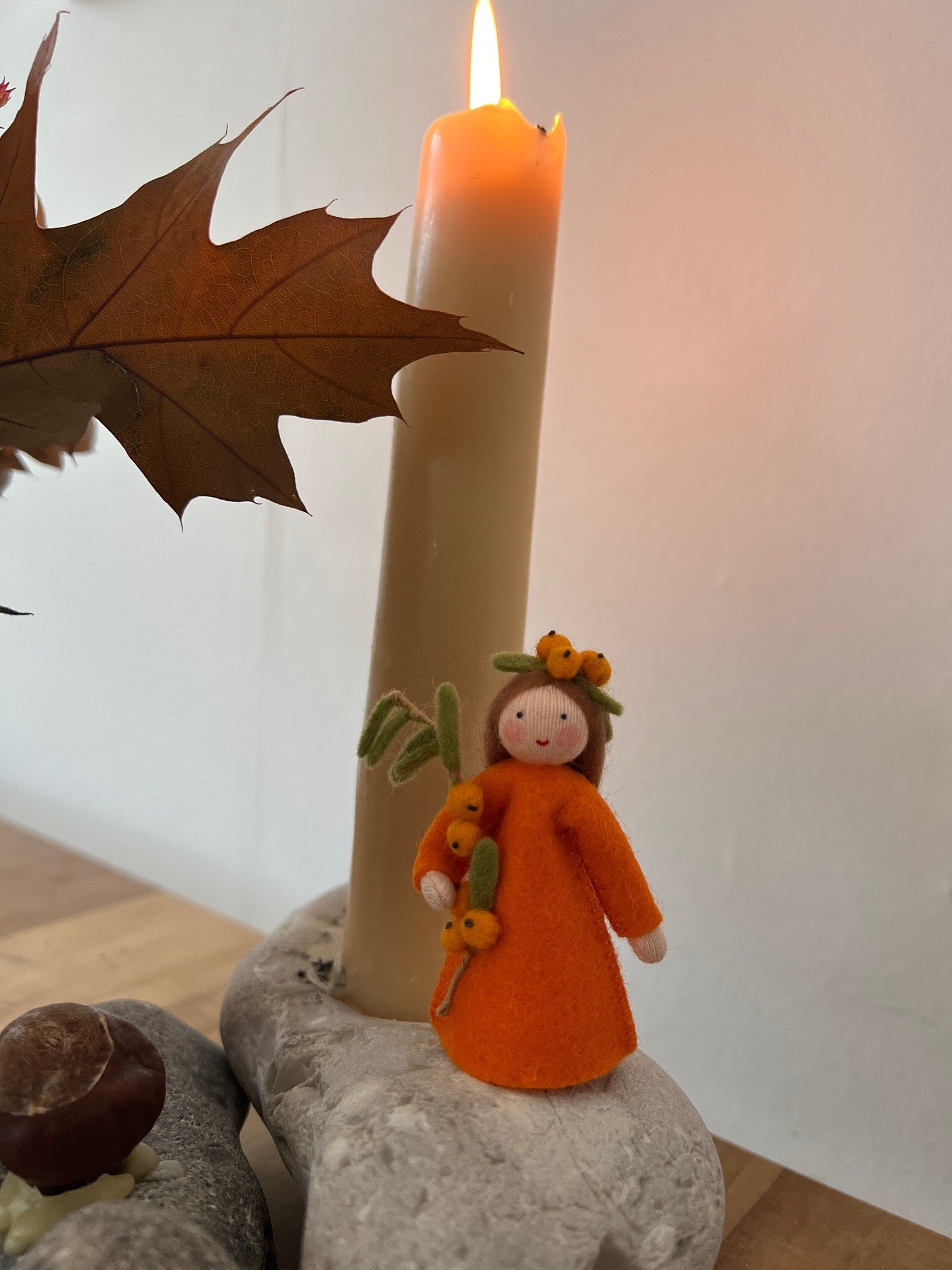 Blumenkind Sanddorn – handgefertigt aus Wollfilz