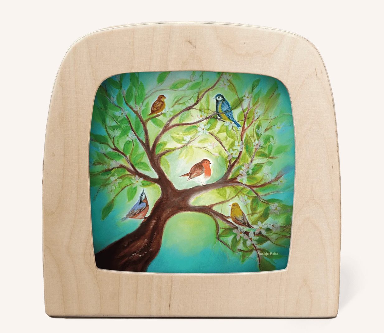Diese Motive wurden von den Künstlerinnen Baukje Exler aus Ölpastellkreide, Geertje Kapteijns aus Tafelfarbe und Annefleur von Het Wol Feetje aus Wollbildern gefertigt. Die Motive werden dann auf feine, durchscheinende Platten gedruckt, wodurch die Lebendigkeit der Farben verstärkt wird.