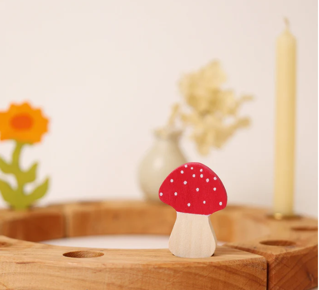 Jede Figur ist aus feinem Lindenholz gefertigt und von Hand bemalt – so wird jedes Stück zu einem kleinen Unikat. Mit einer Höhe von ca. 6–8 cm passen die Stecker wunderbar in alle gängigen Grimms-Festtagsringe und -Spiralen.